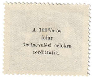 - A 100+100 koronás bélyeg hátoldalán fordított állású felülnyomás,