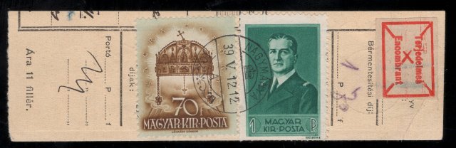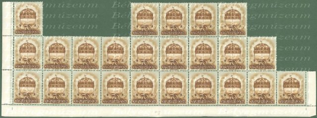 3Egy bélyeggyűjtő azonban 1938-ban egy Nagymányáról kapott postai küldeményen felfedezte, hogy a barna színű 70 filléres bélyegről hiányzik a HAZATÉRÉS 1938 felirat. Ezt követően derült ki, hogy egy ívről véletlenül lemaradt a harmadik menetben nyomtatott HAZATÉRÉS 1938 felirat, mivel ez az ív valószínűleg összeragadhatott egy másik ívvel és ezt követően épp a visszacsatolt területen lévő felvidéki Nagymánya település postájára került ahol ebből 62 darabot fel is használtak. A posta intézkedett a 38 darabos maradvány bevonására, melyből 14 darabot protokoll célokból elajándékoztak egy 24 darabos ív pedig a Bélyegmúzeumba került. Ez az ív egyedi filatéliai termék, nemzeti vagyonelem, így piaci forgalomba sem kerülhet soha. Az értékét felbecsülni is lehetetlen, a szakértők szerint ha forgalomba kerülne értéke fél milliárd forint körül lenne. |