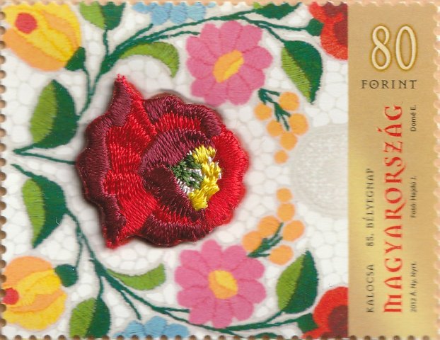 A 2012-es Bélyegnapra készült miniatűr műalkotások különleges eszközökkel mutatják be hazánk keresztény hagyományait, a kalocsai népművészet egyedi hímzésmutívumát és a magyar gasztronómia különleges alapnyagát. A Kalocsa-kollekció egyik bélyege valódi kalocsai hímzéssel készült,, mely filatéliai rikaságank számít. Egy másik bélyeg pedig a kalocsai paprikát ábrázolja, amely nélkül elképzelehetetlen a magyar konyhára jellemző íz és színvilág. Ez a bélyeg olyan speciális nyomdatechnológiával készült, mely mikrokapszulákba zárva a paprika különleges illatát tartalmazza.